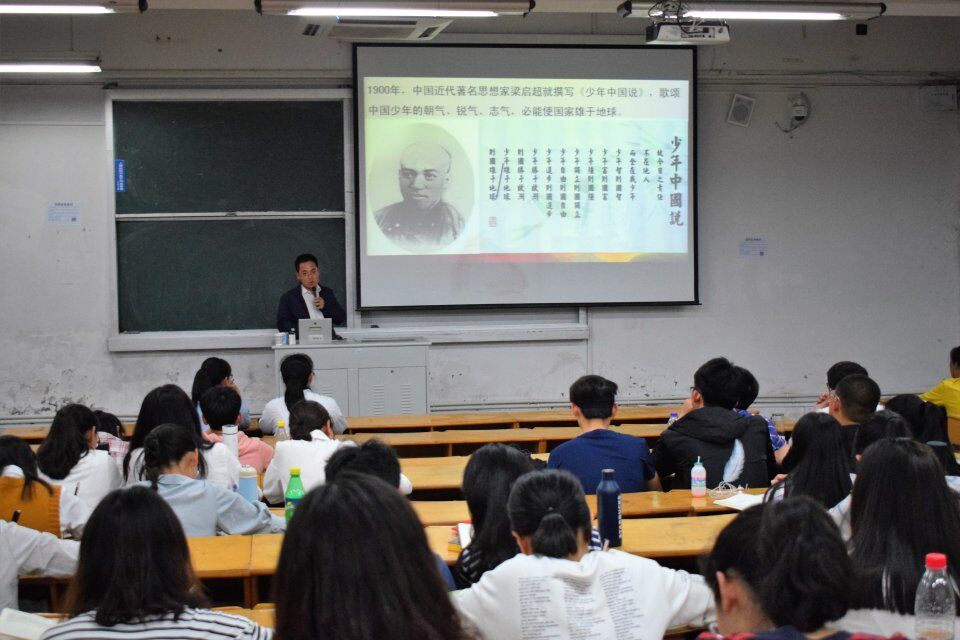 讲座主要围绕五个方面展开:青年兴则国家兴、青年强则国家强,志当存高远,梦想从学习开始,梦想靠本领成就、有多大担当才能干多大事业,在感悟时代中、紧跟时代中珍惜韶华。李海涛老师首先带领同学们梳理了十九大报告,指出了广大青年要坚定理想信念,志存高远,脚踏实地,勇做时代的弄潮儿,在实现中国梦的生动实践中放风青春梦想,为人民利益的不懈奋斗中抒写人生华章。随后,李教授通过详细介绍梁启超先生的《少年中国说》、陈独秀先生的《青年杂志》、李大钊先生的《晨钟》、毛泽东、习近平对青年人的殷切寄语,让青年们深刻地思考理想信念的重要意义。接着,李老师以我会干什么?我能干什么?我将干什么?三个问题警醒青年们今后要做到勤学、修德、明辨、笃实。最后,李教授又谈及了五个素养:理论素养、品德素养、知识素养、创新素养、实践素养,让青年人在感悟时代紧跟时代中不负韶华。