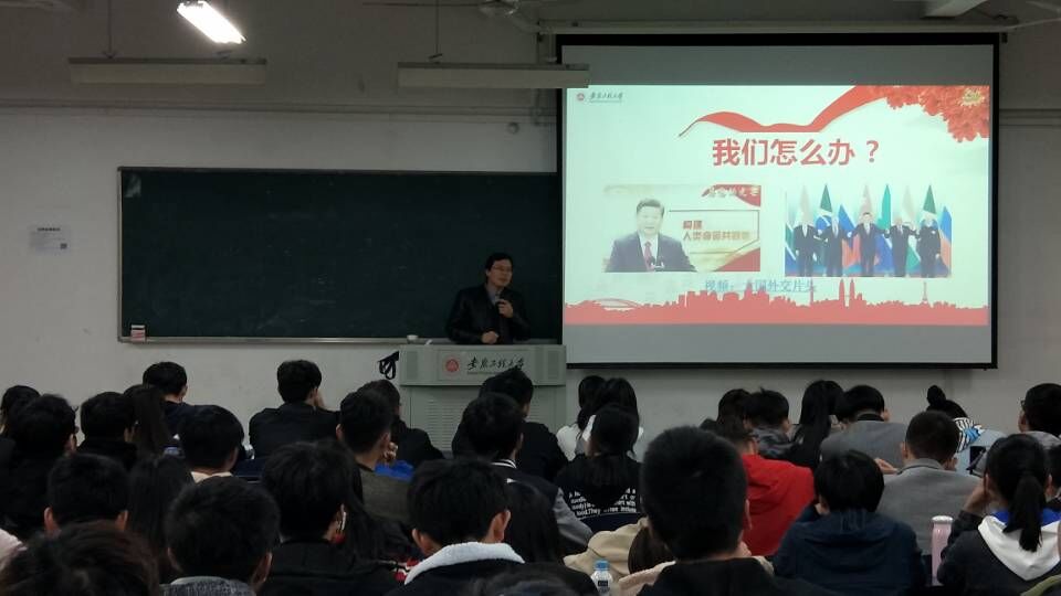 虞满华老师就十九大报告中所提出的构建人类命运共同体从其思想的形成与发展、提出的背景、思想的内涵、思想的重大意义、思想的创新性、以及构建人类命运共同体的途径与措施等六个方面进行阐述。虞老师首先着重叙述了中国传统文化对“构建人类命运共同体”这一思想的重大影响,并结合当今时代的局势进行了探讨与分析,从国际和国内两个视角对该思想的形成背景进行了说明,使同学们了解到这一重要思想的产生顺应了时代发展潮流,也是中国共产党的使命担当使然。并对该思想的内涵以及思想核心与创新性进行了深刻阐释。除此之外,虞满华老师又特别讲述了“一带一路”重大规划,以及这一举措对于构建人类命运共同体的意义和价值。虞老师声情并茂的讲授使在场的同学对十九大报告中关于构建人类命运共同体有了更深入的理解,感受到这一思想的先进与创新,同时也坚定了永远跟党走的信念与决心。