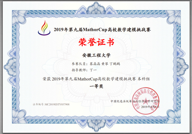 我校学子在2019年第九届MathorCup高校数学建模挑战赛取得优异成绩