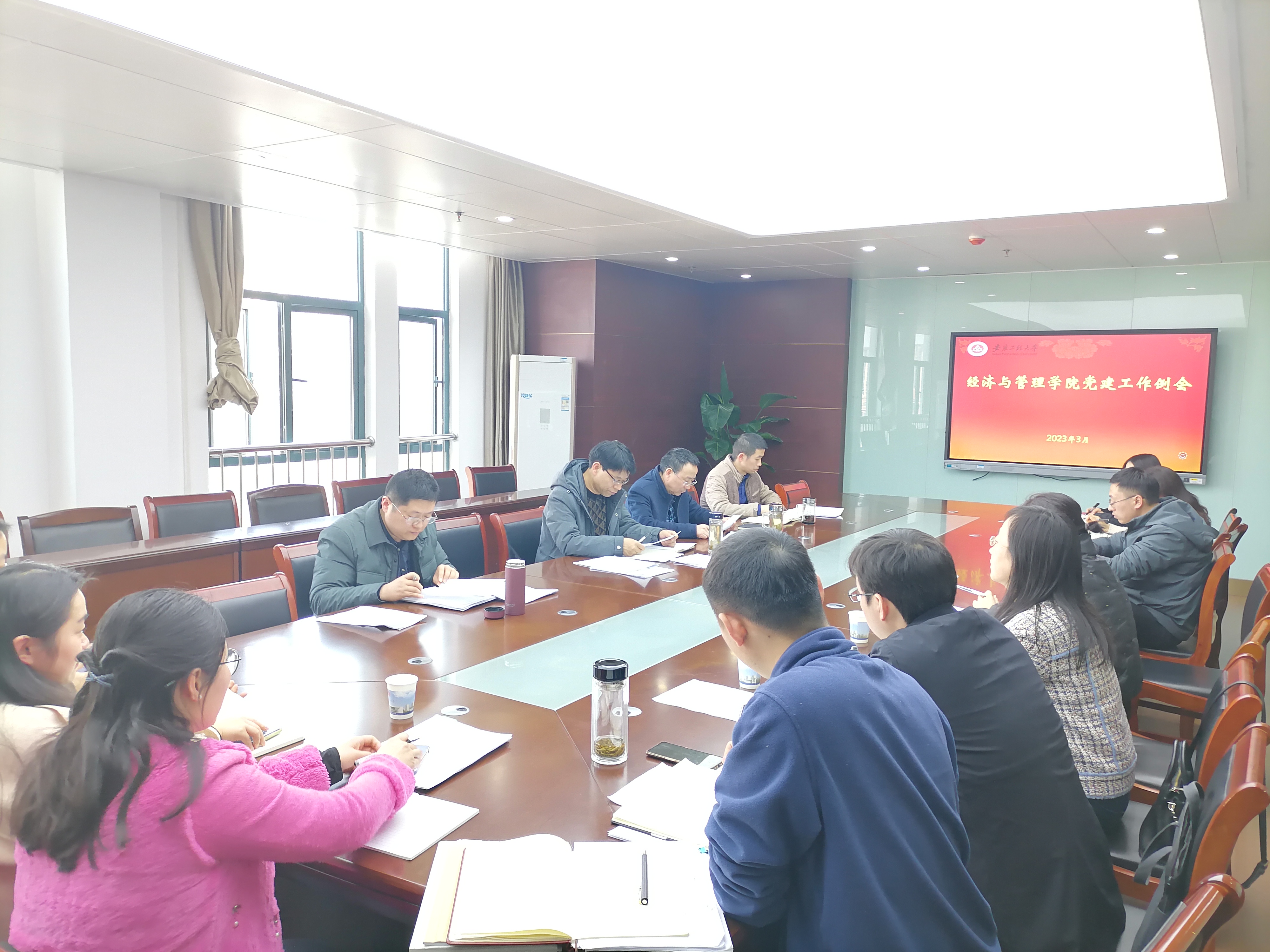 3月6日,经济与管理学院在C座818召开党建工作推进会,学院党政领导、党委委员、全体支部书记参加会议。会议由学院党委书记水心宝主持。