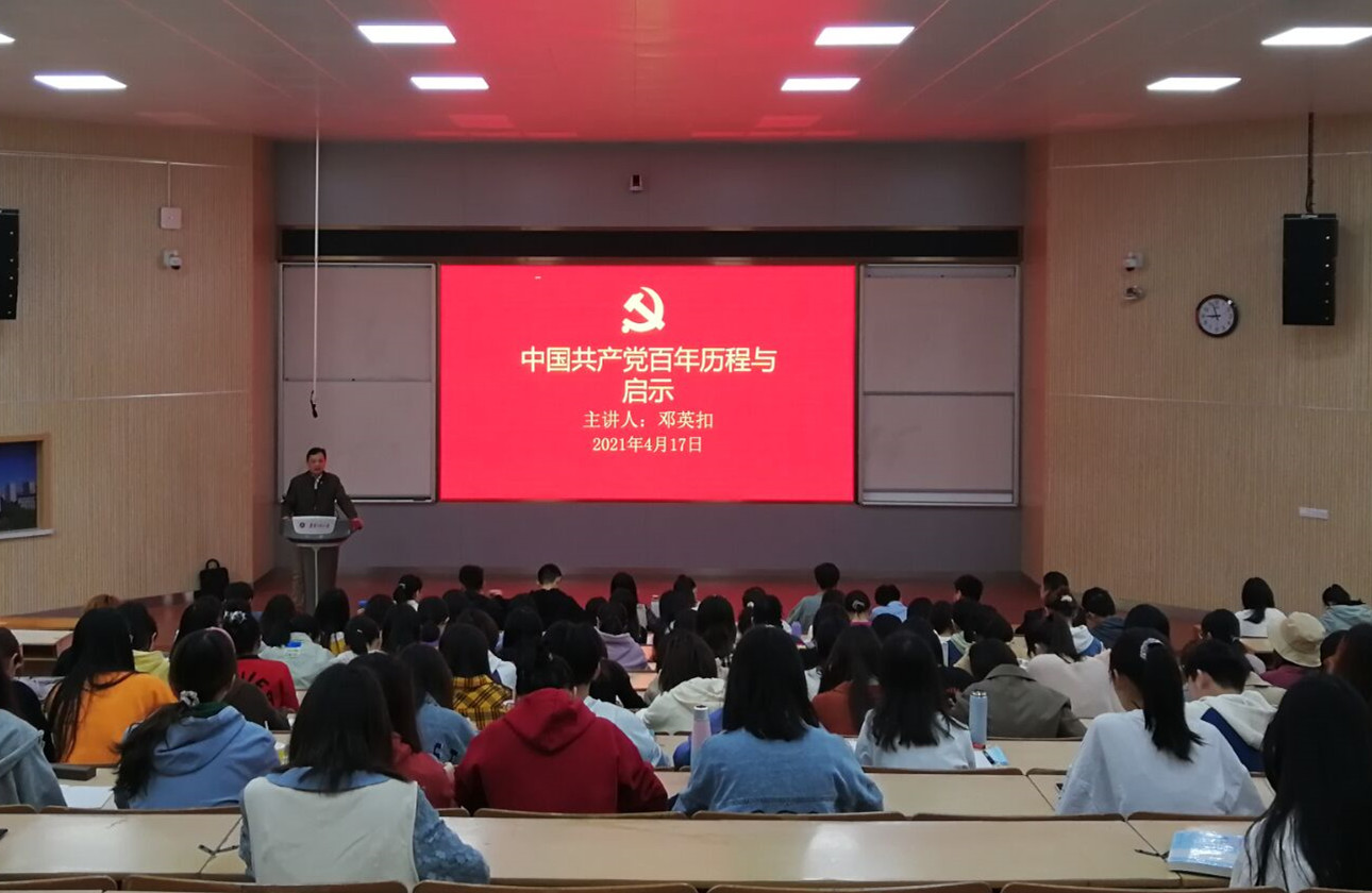 4月17日,人文学院党委在2教报告厅开展党史学习教育。学院党委书记邓英扣作题为《中国共产党百年历程与启示》专题报告,党员教师代表、党员培训班、发展对象培训班、入党积极分子培训班学员共150余人参加学习。