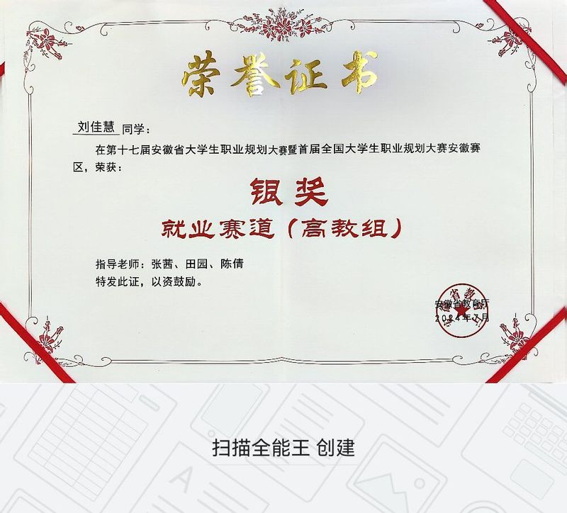 2016年李明玉获安徽省大学生职业生涯规划大赛金奖