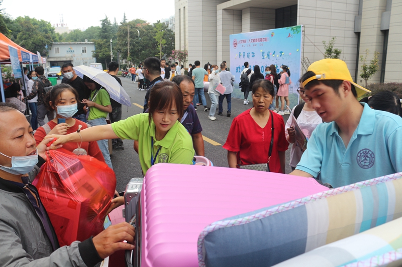 迎新工作期间,数理与金融学院学工队伍全员在岗,全程为新生入学报道做好细心、周密、温暖的服务工作。新生辅导员在学生入学前通过新媒体平台对学生的入学流程展开了详细的讲解,发放“新生入学问卷调查”,学长导员更是贴心的为新生准备了“入学必带物品须知”,学院26名学生党员也自觉主动的亮出党员身份,佩戴党员徽章全程参与了迎新工作。针对男生宿舍区距离迎新点较远,借调多部三轮车,辅导员老师和学生干部驾车为新生运送行李。学院领导、全体辅导员老师与学生党员、学生志愿者一起,在学院迎新接待点为新生办理报到手续,为家长答疑解惑,并做好大学生涯规划工作。