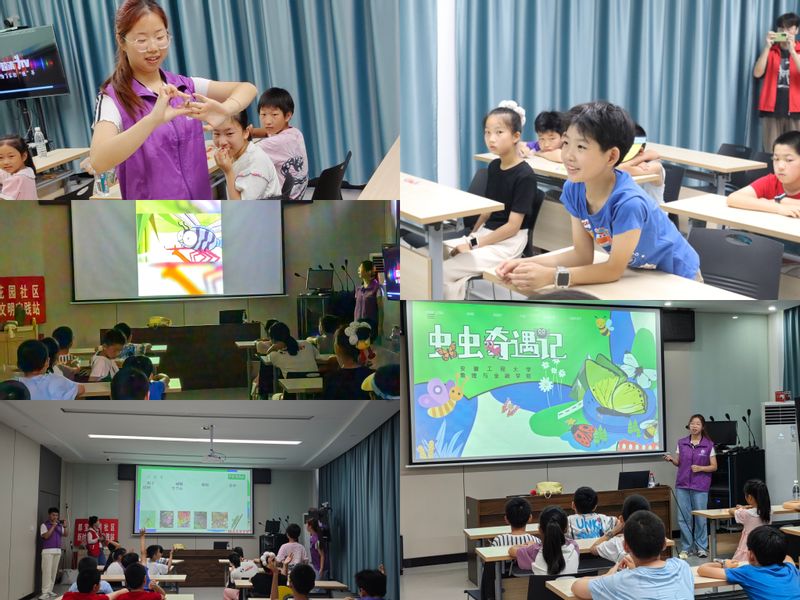实践团开设“虫虫奇遇记”科普小课堂,带领小朋友们走进奇妙的昆虫世界。团队成员以生动有趣的讲解和互动问答,向孩子们介绍昆虫的种类、习性及生态价值,激发他们对自然科学的好奇心。课堂气氛活跃,孩子们在欢声笑语中学习知识,培养科学探索精神。