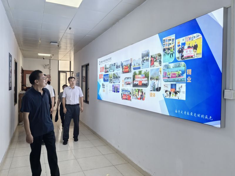 黄友锐校长一行首先实地走访了学院舞蹈教室、专业实验室及体验产业学院展厅。在考察过程中,校领导对学院精心打造的文化墙建设成果给予了高度肯定。