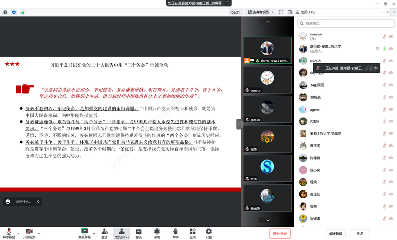 12月29日下午,校党委常委、副校长,校党的二十大宣讲团成员费为银线上为外国语学院宣讲党的二十大精神。学院党委理论学习中心组成员、全体党支部书记、教职工、学生党员参加学习,会议由学院党委书记董金权主持。