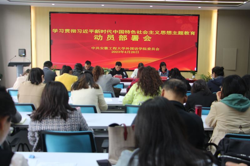4月26日,外国语学院党委学习贯彻习近平新时代中国特色社会主义思想主题教育动员部署会在9J209会议室召开,学院党政班子成员、理论学习中心组成员、全体党员教师、学生党员代表出席会议,院党委书记董金权主持会议并作动员讲话。