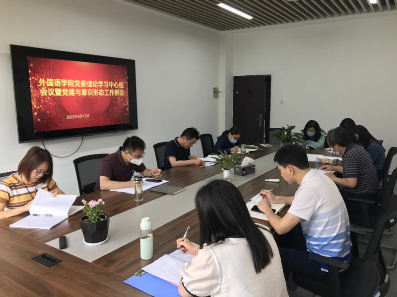 为进一步落实学校学习贯彻习近平新时代中国特色社会主义思想主题教育工作要求,将主题教育与“三抓”工作、“三全六专”育人实践有效融合,5月15日下午,外国语学院在9J211召开党委理论学习中心组会议暨党建与意识形态工作例会,专题推进学院主题教育和三全六专育人实践,会议由院党委书记董金权主持。