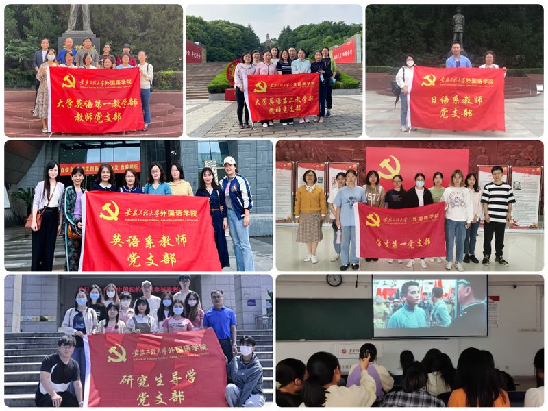 大学英语第一教学部教师党支部和日语系教师党支部的教师党员们来到王稼祥纪念园,通过陈列室里收藏的王稼祥在各个历史时期的实物、图片、信件等珍贵资料深入了解了王稼祥作为伟大的马克思主义者和党的卓越领导人在中国革命各个历史时期的丰功伟绩和重大贡献。大学英语第二教学部教师党支部和学生第二党支部的师生党员们来到芜湖烈士陵园,集中参观学习了芜湖自辛亥革命到中华人民共和国成立以来,近百年中发生在地区内的重大历史事件、影响和推动本地区历史变革的重要人物,感受芜湖人民百余年来的爱国主义革命斗争史。研究生导学党支部的师生党员们赴无为新四军七师纪念馆,在“皖江抗日起怒潮”“血泊中诞生的新四军七师”“第七师健儿驰骋皖江”“永远的丰碑”中体会皖江抗日民主根据地的革命浪潮和革命前辈的英雄业绩。学生党员耿俊华说,“我虽来自外地,但三年的在芜求学生活早已让我对这座城市产生深厚的感情。通过本次参观学习,特别是在看到爱国将领戴安澜、一级战斗英雄李家发、二级战斗英雄毕武斌等烈士的英雄事迹后,我对芜湖这座城市更增加了一份敬意和热爱,也更坚信自己能在这里学有所成”。